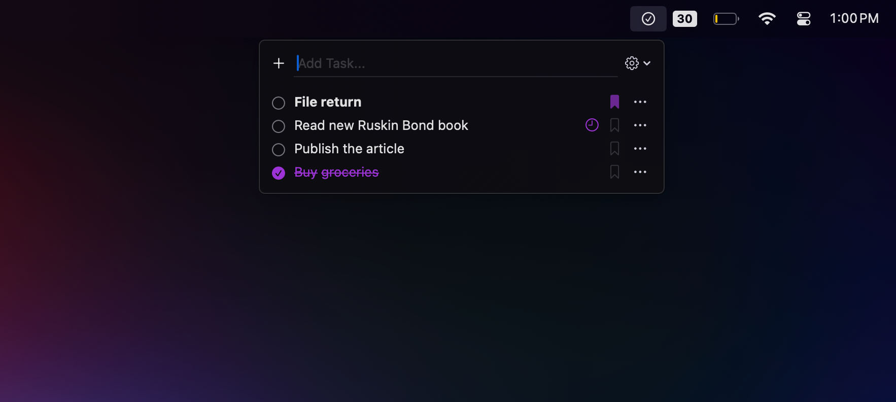 The app syncs your todos/tasks with your Reminders app back and forth. Meaning, that if you add a task in the Reminders app, it will be added in the app and vice versa. And it’s a great way to have quick access to your todos/tasks in menubar.
